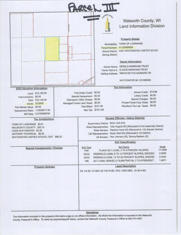 Parcel 3 – (Section 29) 23.95 Acres, Tax parcel is located on the west side of Jackson Rd.